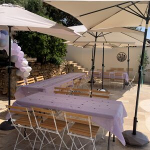 Description produit Petite table à napper pour 4 personnes. Longueur/largeur 70cm En option nappe de dimension 1.50/1.50